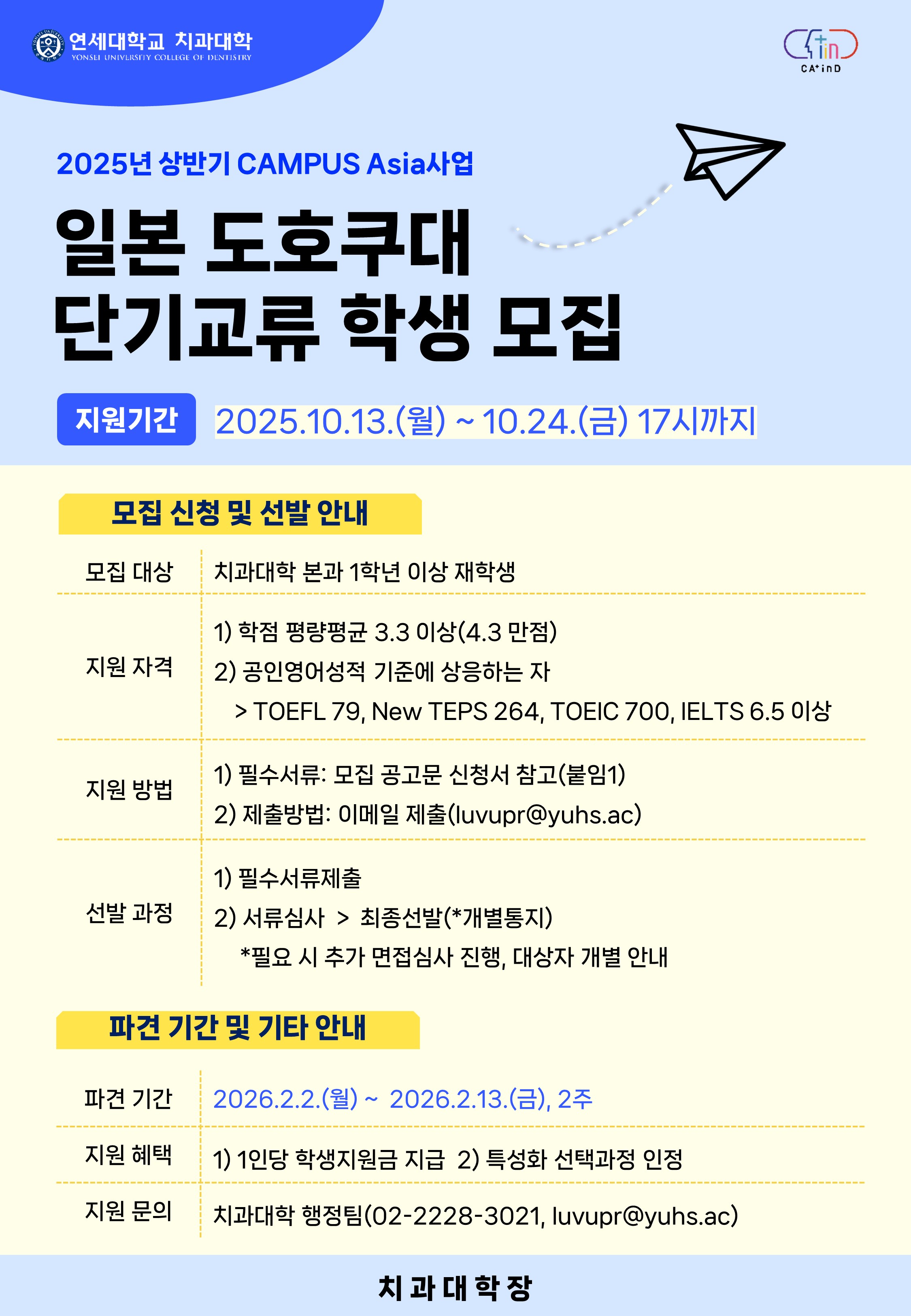 - 신청대상:치과대학 본과 1학년 이상 재학생